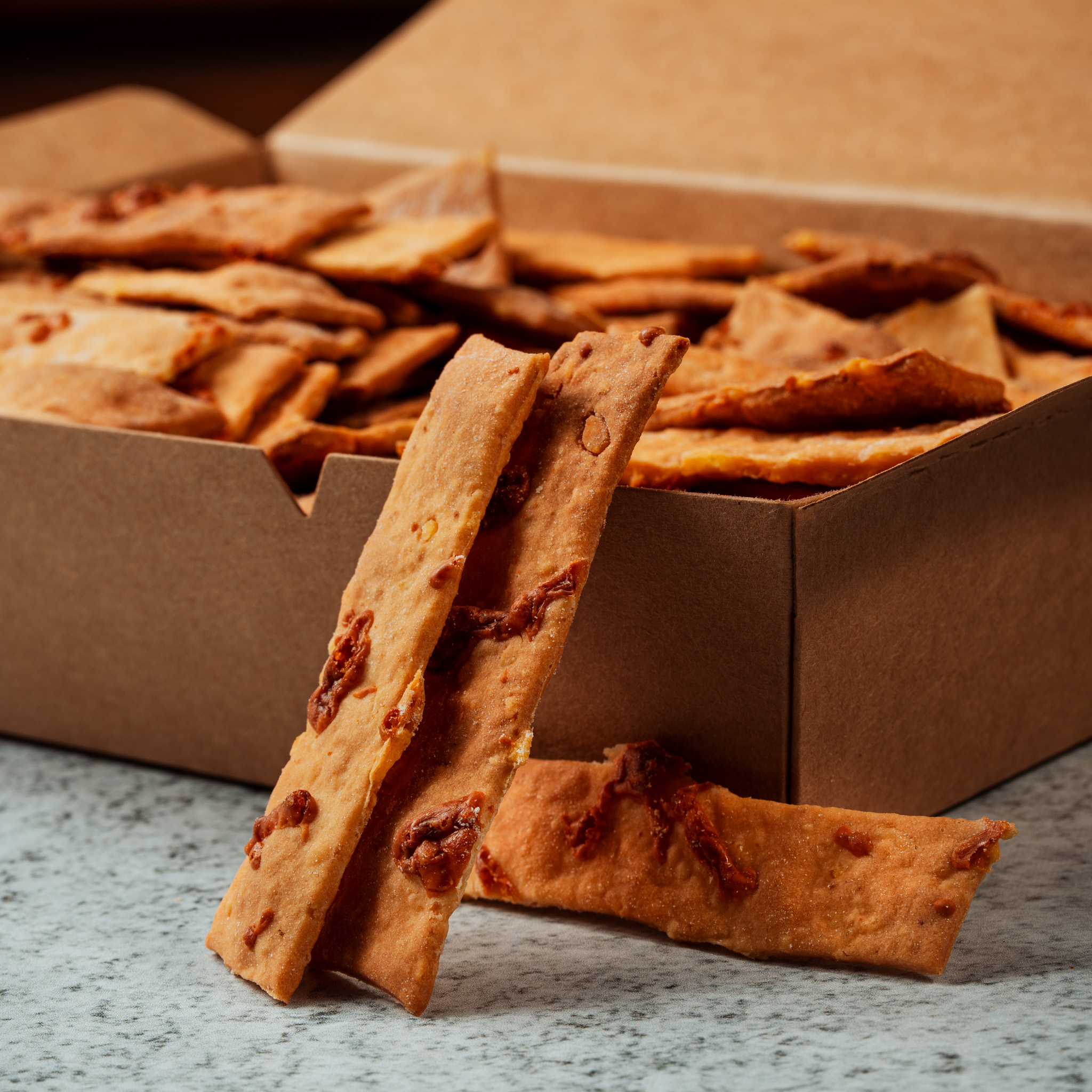 Гризините с моцарела съчетават деликатния вкус на истинска моцарела с фино изпечено тесто, превръщайки се в ароматно предложение за всеки момент. Нашите ръчно направени солени печива са идеални за всички, които ценят добрия вкус и майсторската изработка.