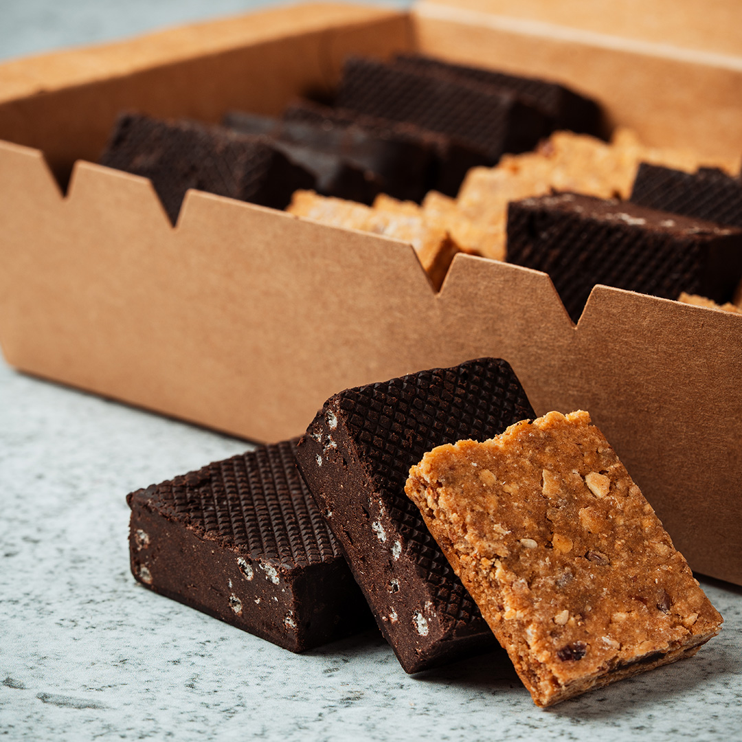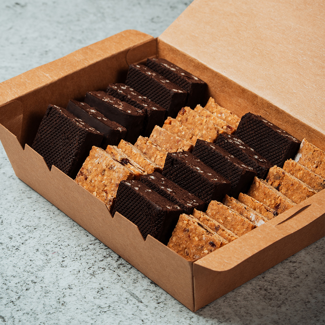 Бокс 🎉 „Протеиново барче брауни и барче с микс от ядки“ 🎉 е най-сигурният избор за сладък кетъринг в София и Варна.